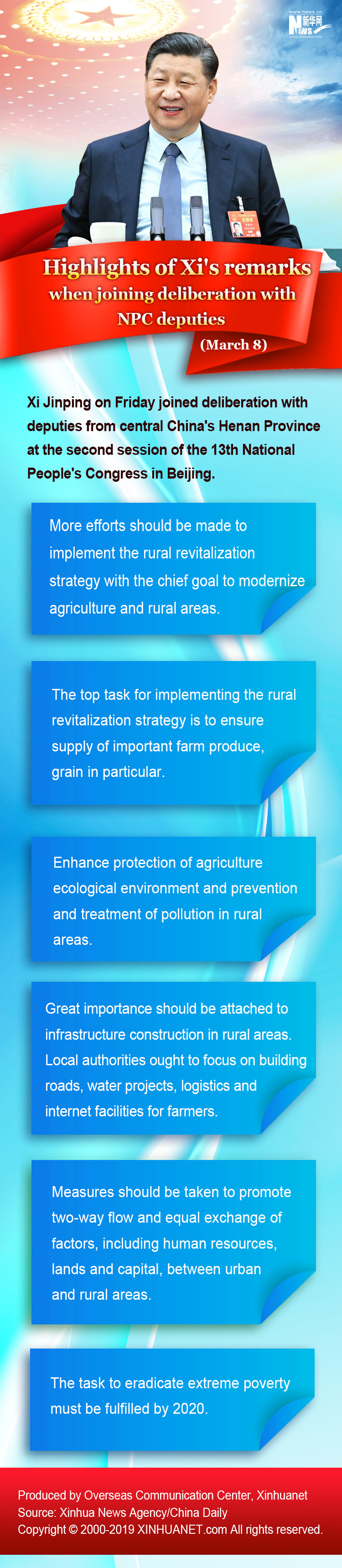 Infographic: Highlights of Xi's remarks when joining deliberation with NPC deputies (March 8)