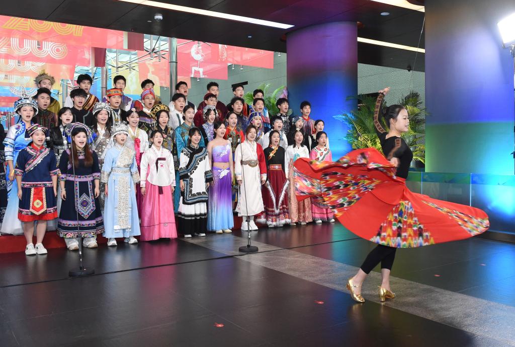 12月22日,青少年合唱团在国家大剧院北门入口处合唱迎宾。新华社记者 罗晓光 摄