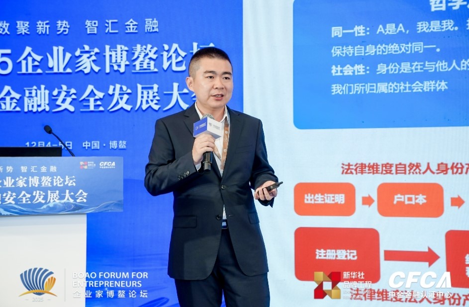 12月2日至5日,2025企业家博鳌论坛系列活动在海南博鳌举行。在4日举行的数字金融安全发展大会上,中金金融认证中心(CFCA)产品中心负责人刘通做了《以多维互信的数字身份服务赋能金融数字化转型》的主题分享。