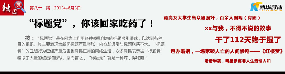 “標題黨”新聞是病,得治! 標題黨:各種聳人聽聞的問題吸引了大眾“理性頭腦”的求知的欲望,最終使大眾陷入深深的認知困擾中。