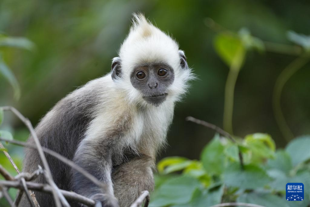 在广西崇左白头叶猴国家级自然保护区板利片区,白头叶猴在茂密的树林间穿梭觅食,黑白的毛发与绿色的枝叶相映成趣。白头叶猴是国家一级重点保护野生动物,因头顶毛发呈白色、以树叶为食而得名。