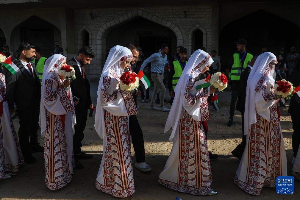 12月2日,在加沙地带南部城市汗尤尼斯,巴勒斯坦新人参加集体婚礼。