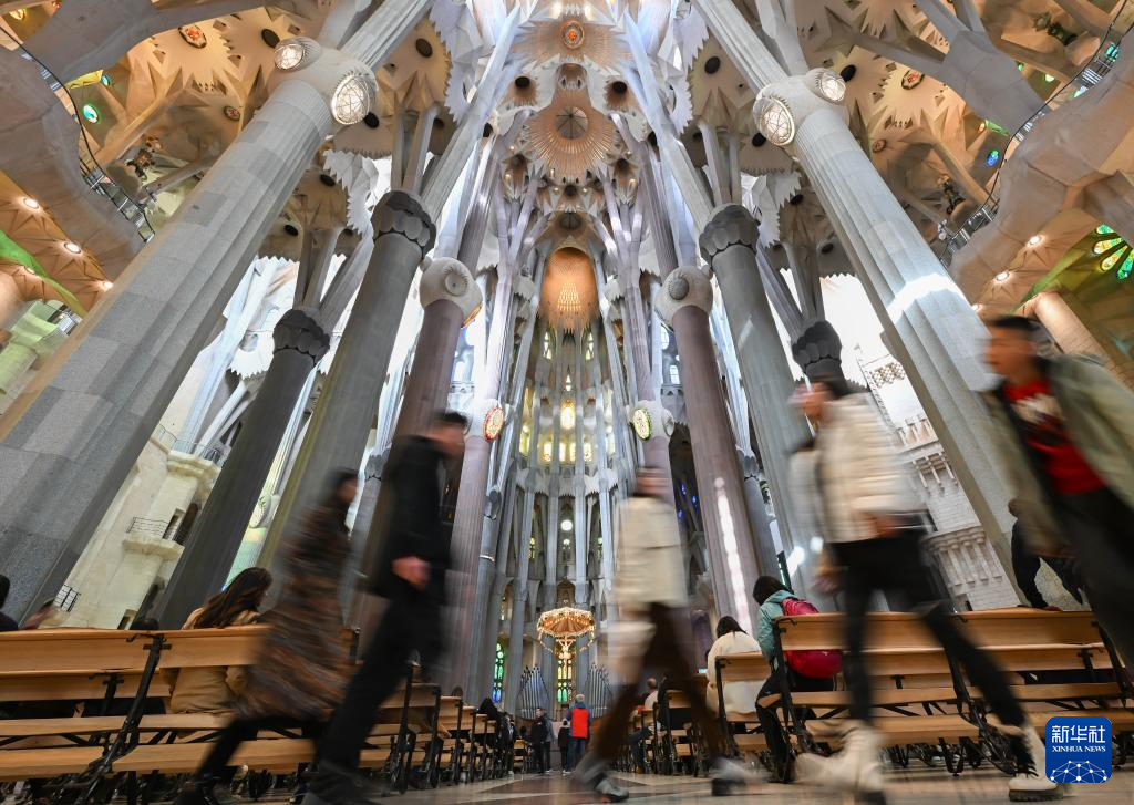 12月1日,在西班牙巴塞罗那,游客在圣家堂游览。