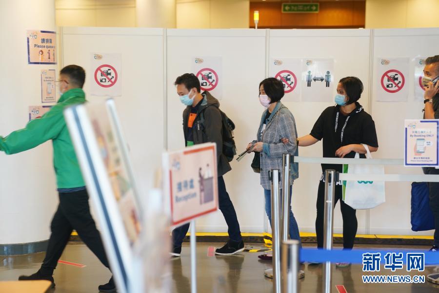 2月26日,在位于香港中央圖書館的社區(qū)疫苗接種中心內(nèi),市民排隊(duì)準(zhǔn)備接種疫苗。新華社記者 王申 攝