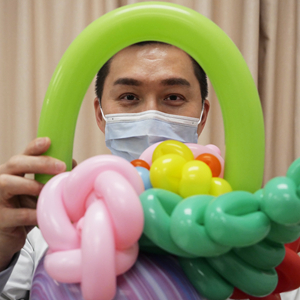 去年3月至5月,他組織一群志同道合的朋友手工制作了多款造型可愛的氣球贈送給醫(yī)護(hù)同仁,并在其任職的東區(qū)尤德夫人那打素醫(yī)院(簡稱“東區(qū)醫(yī)院”)專門設(shè)立了大型氣球擺設(shè)區(qū)。在疫情陰霾下,色彩繽紛的氣球墻為大家?guī)砼狻?/p>