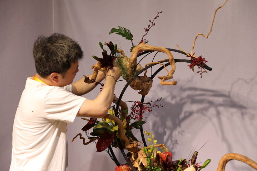 “輕攏慢捻抹復(fù)挑,插花也如琵琶語(yǔ)?!庇浾咴诂F(xiàn)場(chǎng)看到,選手們沉浸在插花藝術(shù)創(chuàng)作中,鮮花、枝葉在他們的手中經(jīng)過(guò)一番規(guī)整修剪,又如繪畫(huà)般慎重落下一抹畫(huà)筆,嬌艷綻放的鮮花在新的布局下,逐漸呈現(xiàn)出定格的自然之美、線條之美與意境之美,花藝設(shè)計(jì)本身的創(chuàng)作過(guò)程,就是一場(chǎng)賞心悅目的藝術(shù)呈現(xiàn),人和花交流的過(guò)程,也會(huì)讓人們更加能夠體會(huì)到生命的真實(shí)與絢爛。