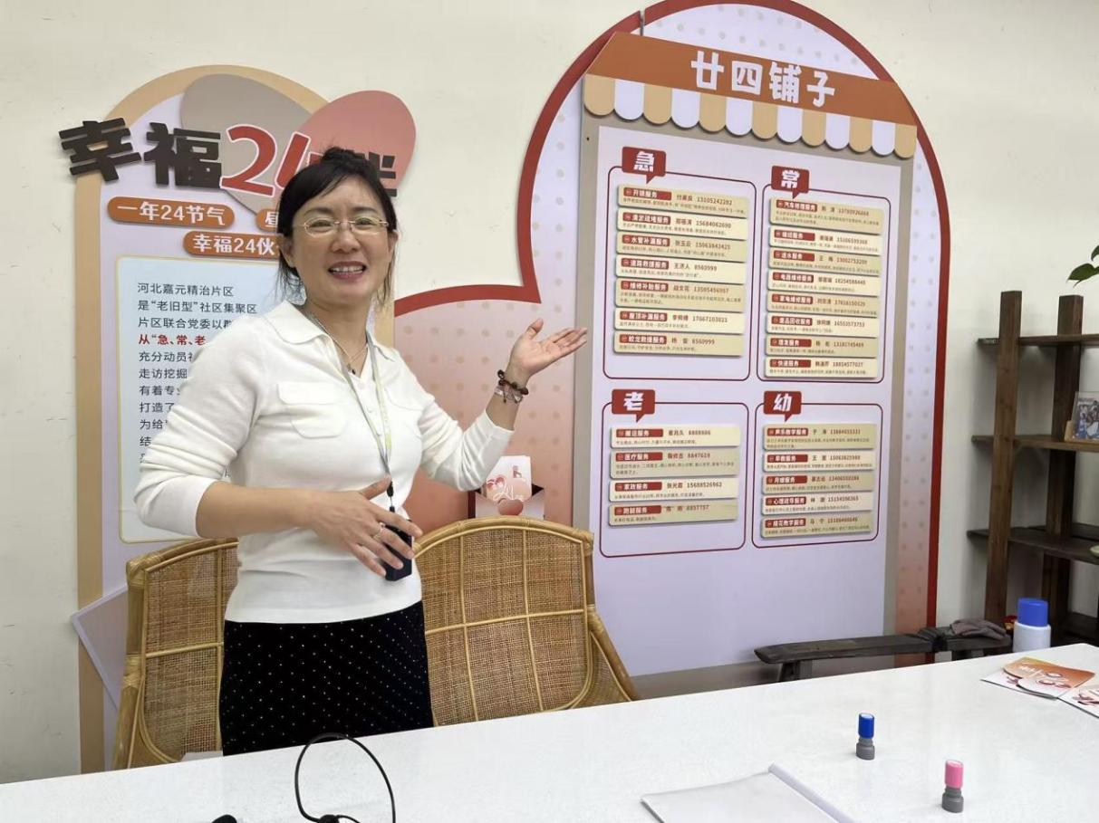 2025年11月16日,龙口河北嘉元社区党总支书记赵颖静热情洋溢地介绍“廿四铺子”。新华网吕爱玲 摄