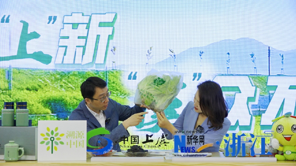 現(xiàn)場,紹興市上虞區(qū)副區(qū)長周尊隆用關(guān)鍵詞推介上虞:“最早建縣”“曹娥”“祝英臺”“產(chǎn)糧大縣”“四季仙果”“孝德文化之鄉(xiāng)”“綜合實力百強(qiáng)區(qū)”……一個鐘靈毓秀、朝氣蓬勃的上虞躍然話間。主持人品嘗上虞:本地大米、覺農(nóng)翠茗茶、高山櫻桃、桑葚、活體蔬菜……一個民安物阜、有滋有味的上虞展現(xiàn)舌尖。場外主播則探秘上虞:90后新農(nóng)人、科技大棚、無土栽培……一個創(chuàng)新智慧、數(shù)字興城的上虞閃爍田間。