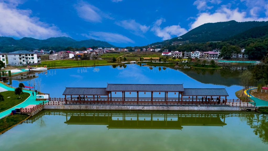 萍鄉(xiāng)市上栗縣泉塘村“泉之源”田園綜合體航拍。(鐘楊攝 新華社通聯(lián)照片)