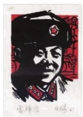 ????后來他家搬去了蘇州河畔的“半島”,我去得就少了。那時(shí)老先生名重繪畫界。但是每有版畫活動(dòng),先生年長了,還是坐著輪椅來參觀。“人美”出版了他的畫集,我到他家看到了這本版畫集,其中有老先生六十年創(chuàng)作的版畫“雷鋒像”。“刻得真好,”我對(duì)著這一頁看了好久,“我想得到這張雷鋒像。”老先生說“怎么你要這個(gè)”?我便把自己平日里喜歡學(xué)雷鋒的故事講給他聽,他點(diǎn)點(diǎn)頭。便送了我這張簽名的“雷鋒像”。