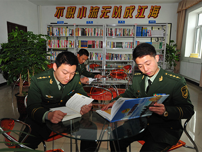 官兵在警營(yíng)圖書(shū)室看書(shū)