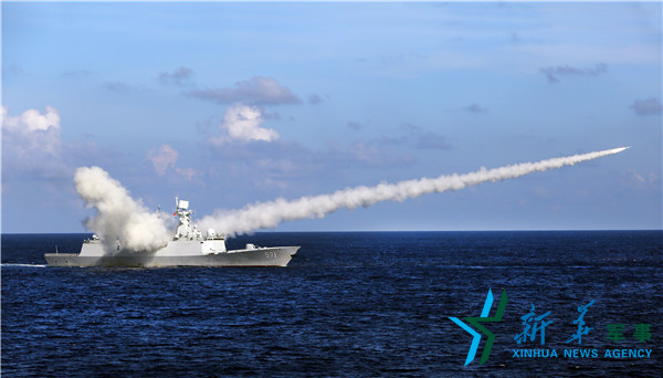 ??? 海軍在海南島至西沙附近??沼蚪M織實兵實彈對抗演練,這是導彈護衛(wèi)艦運城艦發(fā)射反艦導彈(7月8日攝)。新華社記者查春明攝
