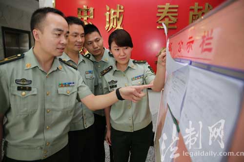 ????為落實黨中央從嚴治黨的新要求,這個總隊堅持立規(guī)矩、講規(guī)矩、守規(guī)矩,堅定不移地推動班子建設(shè),深入排查整改不守紀律、不守規(guī)矩的問題,推動“兩個責任”落地生根,研判預防職務犯罪工作形勢,等等。這個總隊黨委班子成員以身示范,為部隊做表率,2016年9月22日,研究出臺增強看齊意識為部隊作表率“四項承諾”:帶頭執(zhí)行人事紀律、帶頭嚴守財經(jīng)紀律、帶頭杜絕違規(guī)插手基層敏感事務、帶頭改進作風。