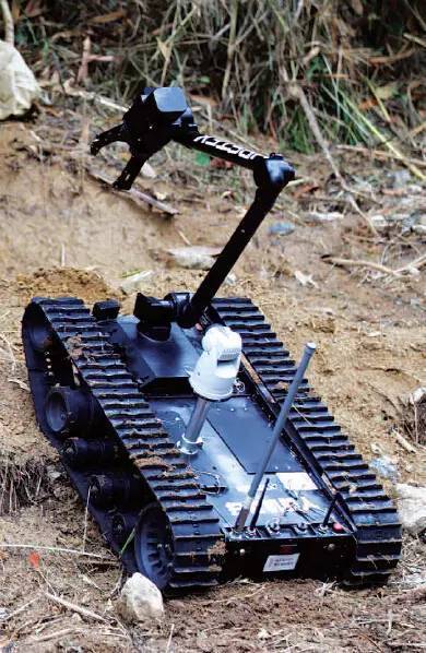 雷場(chǎng)清障車(chē),是通過(guò)遙控操作的。具有在坡度小于40°的山地進(jìn)行清障排爆作業(yè)的功能。該車(chē)具有較強(qiáng)的爬坡能力,操作手可以在1000米范圍內(nèi)實(shí)施無(wú)線遙控控制,完成掃除淺層防步兵地雷、清除灌木叢和鏟運(yùn)樹(shù)木等任務(wù),以電錘擊爆地雷手雷等未爆炸物品,這期間即使產(chǎn)生爆破碎片或者沖擊波都不會(huì)對(duì)操作員構(gòu)成危險(xiǎn)。