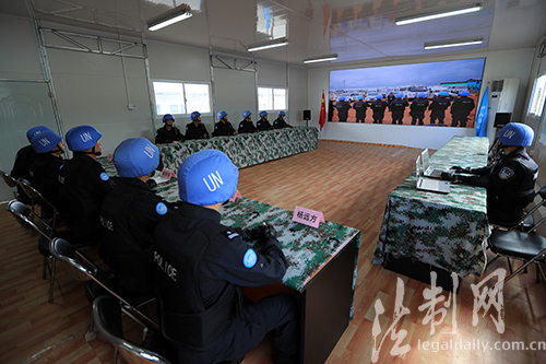 圖為維和警察防暴隊(duì)召開勤務(wù)分析會(huì)