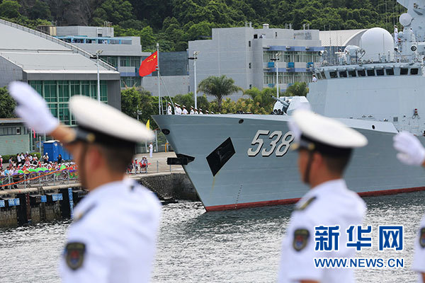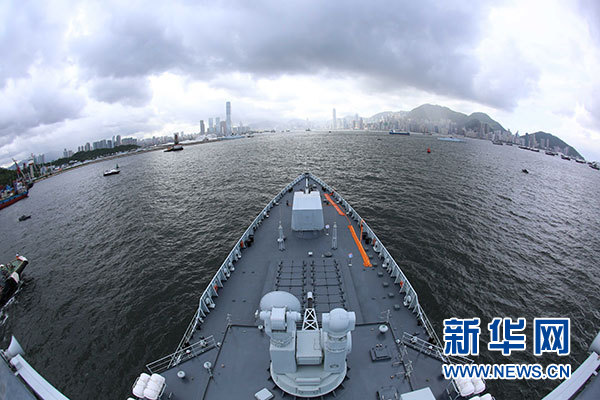 7月7日,海軍銀川艦駛?cè)胂愀郯捍薮a頭。當(dāng)日,正在執(zhí)行跨區(qū)機(jī)動訓(xùn)練任務(wù)的中國人民解放軍海軍航母編隊(duì)抵達(dá)香港,參加香港回歸祖國暨中國人民解放軍進(jìn)駐香港20周年慶?;顒?,受到香港特區(qū)政府和民眾熱烈歡迎。新華社記者 曾濤 攝