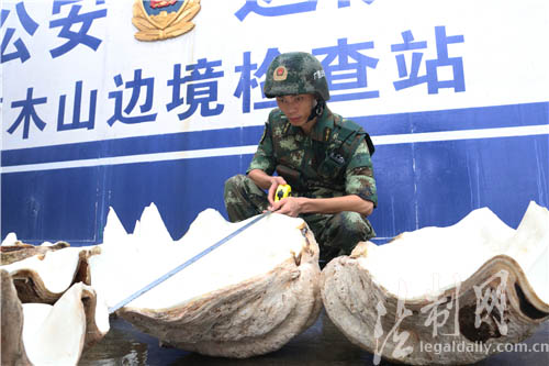 防城港邊防查獲國(guó)家一級(jí)保護(hù)動(dòng)物硨磲標(biāo)本3只 總重218公斤