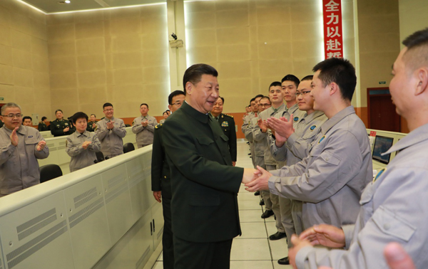 新華社成都2月12日電(記者李宣良、李國利)中華民族傳統(tǒng)節(jié)日——春節(jié)來臨之際,中共中央總書記、國家主席、中央軍委主席習(xí)近平10日來到駐四川部隊某基地,深入發(fā)射工位和技術(shù)廠房,看望慰問部隊官兵,代表黨中央和中央軍委,向全體解放軍指戰(zhàn)員、武警部隊官兵、民兵預(yù)備役人員致以誠摯問候和新春祝福。他強調(diào),要認真貫徹黨的十九大精神,深入貫徹新時代黨的強軍思想,堅持政治建軍、改革強軍、科技興軍、依法治軍,聚焦備戰(zhàn)打仗,加快創(chuàng)新發(fā)展,全面提高履行使命任務(wù)能力,為實現(xiàn)黨在新時代的強軍目標(biāo)作出新的更大貢獻。
