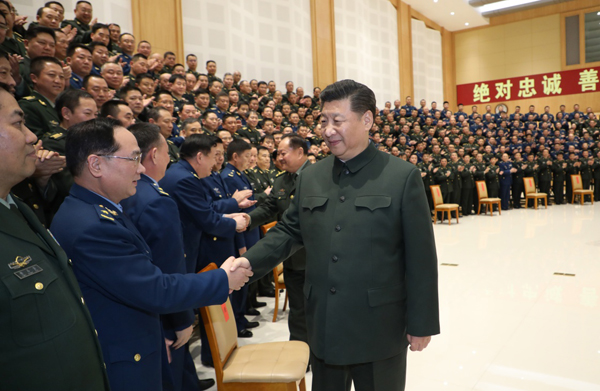 ??? 2月12日,中共中央總書記、國家主席、中央軍委主席習(xí)近平在成都親切接見駐蓉部隊師以上領(lǐng)導(dǎo)干部和建制團單位主官。新華社記者李剛攝