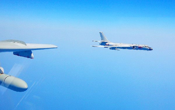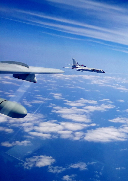??? 4月19日,中國空軍轟-6K等多型戰(zhàn)機執(zhí)行“繞島巡航”任務(wù)。中國空軍4月21日向海內(nèi)外發(fā)布多語種宣傳片《戰(zhàn)神繞島新航跡》??哲姂?zhàn)神轟-6K等戰(zhàn)機近日連續(xù)3天“繞島巡航”的震撼畫面,在宣傳片中集中展現(xiàn),彰顯了空軍飛行員維護國家主權(quán)和領(lǐng)土完整的意志能力。新華社發(fā)(秦軍 攝)