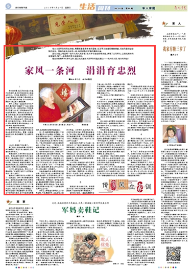 眼瞅著又快到建軍節(jié)了,昨個兒,我叫來大兒子敬朋,指著門楣上懸掛的“光榮之家”牌匾,對他說:“兒啊,把匾取下來,擦干凈,8月1日那天早上咱再掛上去,要讓早上的太陽,首先照亮它。因?yàn)椤褪窃奂掖鄠?、鮮血凝成的家風(fēng)?。 保钪?口述 謝學(xué)楓/整理)