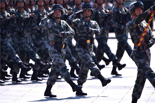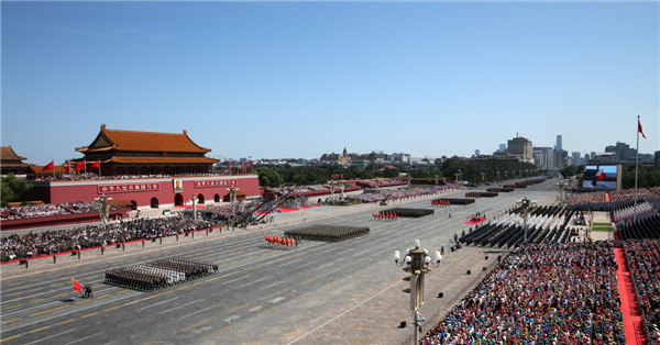 ????2015年9月3日,中國人民抗日戰(zhàn)爭暨世界反法西斯戰(zhàn)爭勝利70周年紀(jì)念大會在北京隆重舉行。這是徒步方隊(duì)通過天安門廣場。新華社記者 龐興雷 攝