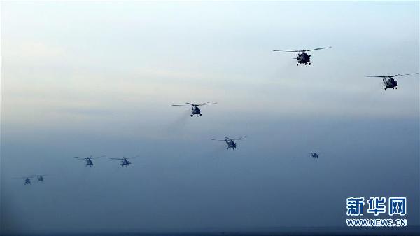 ????陸軍第79集團(tuán)軍某陸航旅在復(fù)雜條件下組織大集群編隊(duì)演練,提高實(shí)戰(zhàn)化水平(2018年1月5日攝)。 新華社發(fā)(李寧 攝)
