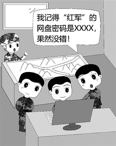 ????演練結(jié)束,這名文書坦言,他早就知道對(duì)方的網(wǎng)盤密碼。原來(lái),此前,各營(yíng)文書為了便于工作交流,有時(shí)會(huì)使用網(wǎng)盤傳輸或分享文件,一些網(wǎng)盤用戶名和密碼不少人都知道。這次演練前,“藍(lán)軍”營(yíng)文書在用網(wǎng)盤調(diào)取查閱資料時(shí),無(wú)意中在對(duì)方網(wǎng)盤中發(fā)現(xiàn)了秘密。
