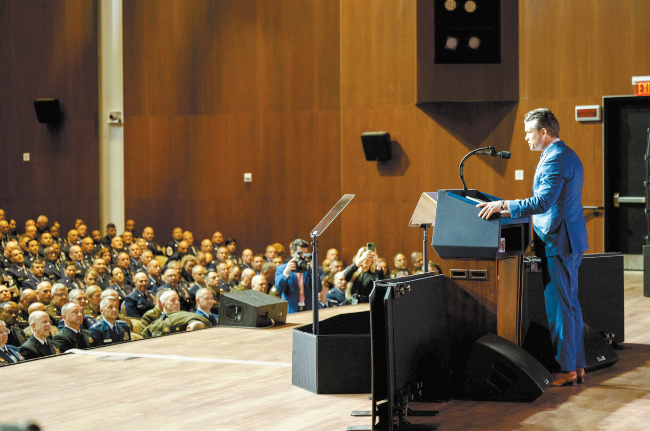 今年9月底,美防长赫格塞思在弗吉尼亚州一处军事基地召集数百名美军将领举行会议。(IC photo)