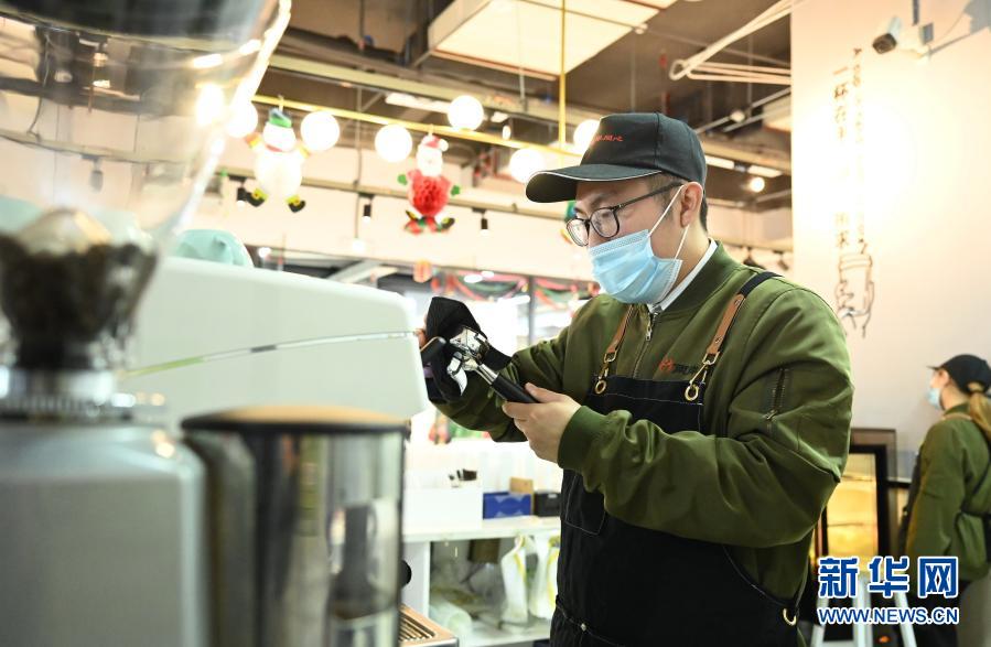 程啟濤在福建省南平市武夷新區(qū)的臺灣青年實訓(xùn)基地制作咖啡(2020年12月30日攝)。新華社記者 林善傳 攝
