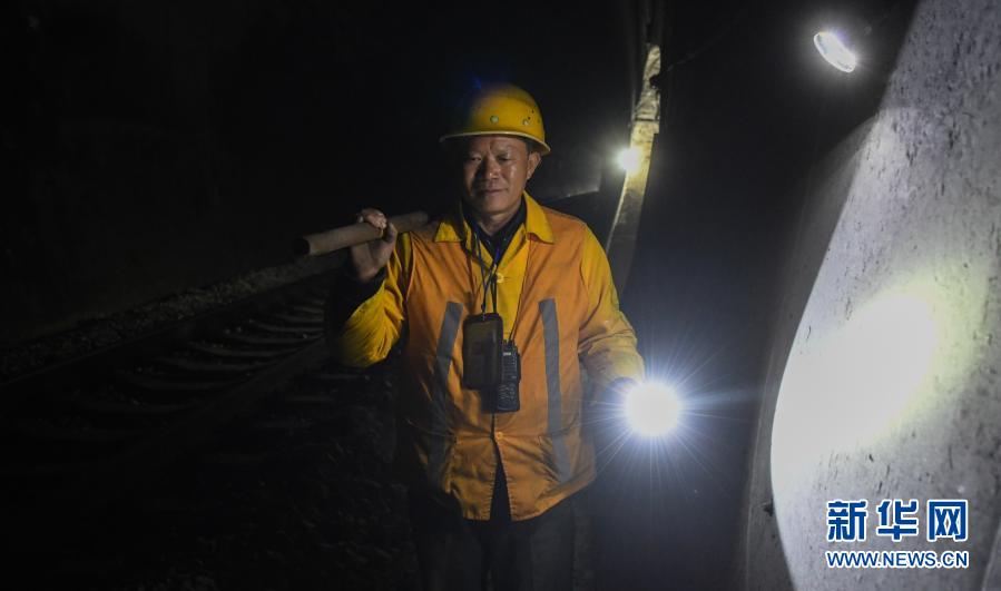 在廣西河池境內(nèi)黔桂鐵路線上的鄧山隧道,中國(guó)鐵路南寧局集團(tuán)有限公司柳州工務(wù)段的4名看守工輪換值班,依靠手電筒在黑暗中穿行,及時(shí)巡查隧道中可能出現(xiàn)的各種隱患,確保每天經(jīng)隧道運(yùn)行的59趟客貨列車(chē)春運(yùn)安全。鄧山隧道全長(zhǎng)773米,是一個(gè)需要人員全天候看守的鐵路隧道。