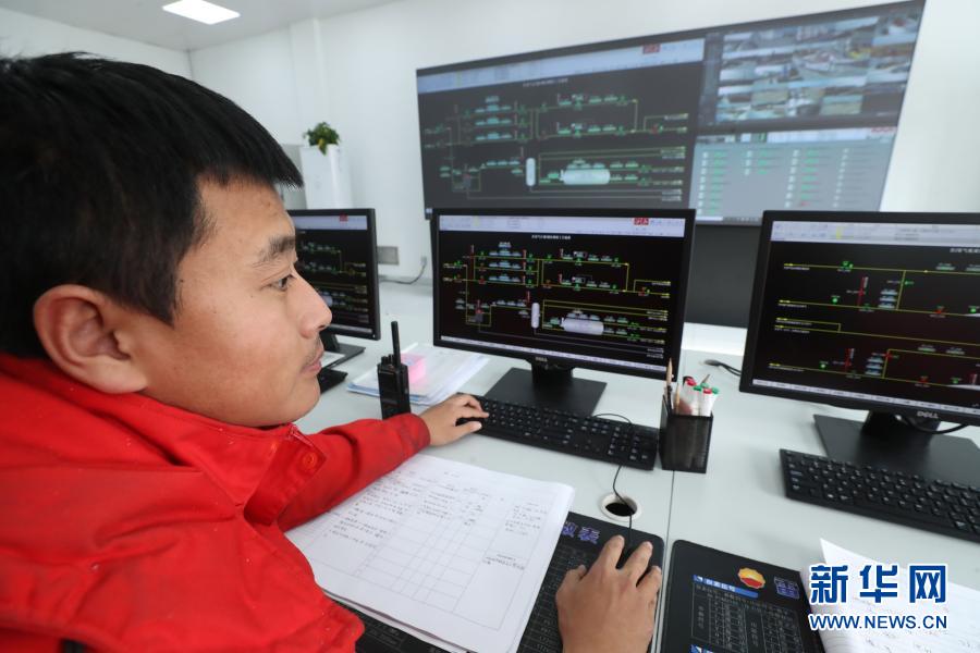 2月3日,在遼河油田儲氣庫公司雷61作業(yè)區(qū),來自吉林遼源的副區(qū)長韓鵬在作業(yè)區(qū)中控室工作。今年他留在當(dāng)?shù)剡^年。