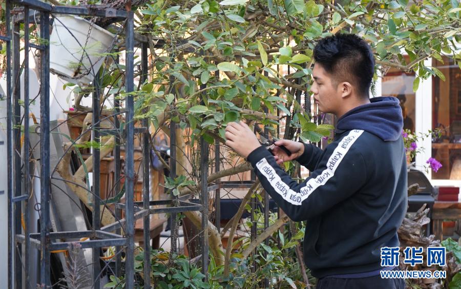 陳緯在私廚的院內(nèi)為檸檬樹(shù)修剪枝葉(1月29日攝)。新華社記者 褚萌萌 攝