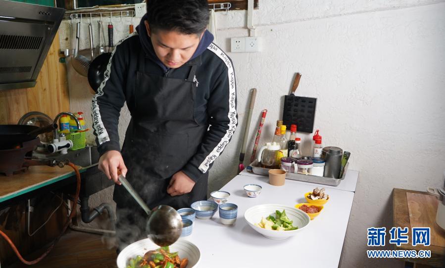 陳緯在燒制自己的臺(tái)灣特色拿手好菜(1月29日攝)。新華社記者 褚萌萌 攝