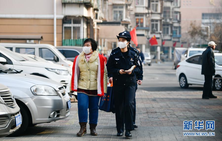 2月11日,在天津市紅橋區(qū)隆春里社區(qū),楊曉惠(右)與隆春里社區(qū)居委會網(wǎng)格員劉志鑫(左)聯(lián)合巡邏,查看小區(qū)安防情況。新華社發(fā)(孫凡越攝)