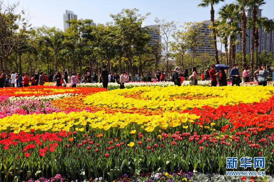 2月14日,游客在福建省廈門市園博苑賞花。新華社發(fā)(周道先 攝)