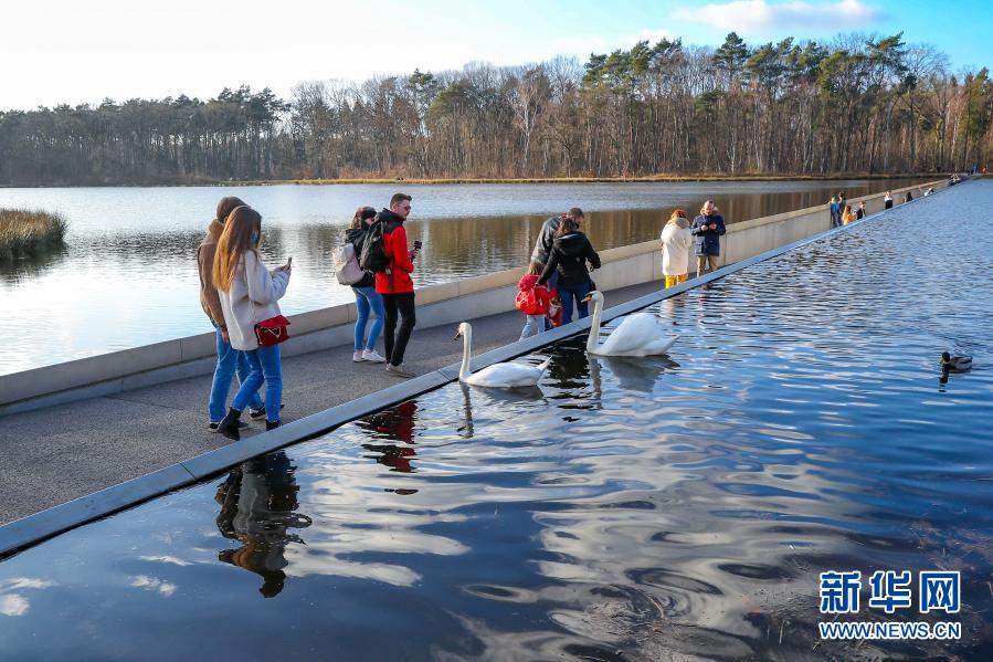 2月27日,人們在比利時小鎮(zhèn)波克萊克附近的“水中通道”中前行。