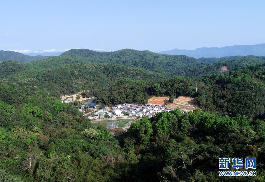 這是群山環(huán)抱的番賽村(2月25日攝,無人機照片)。新華社發(fā)(黎多江 攝)