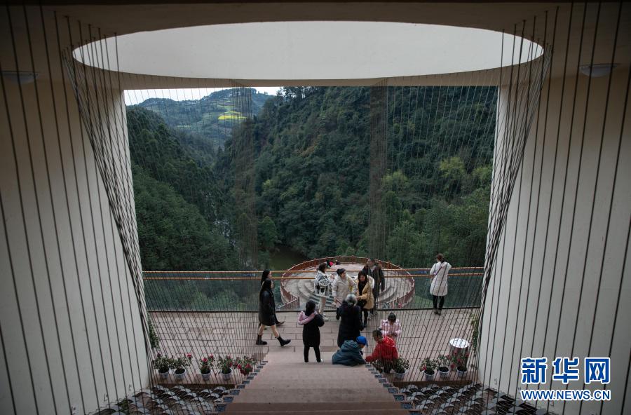 3月1日,游客在幸福古村的觀景平臺賞景。新華社記者 江宏景 攝