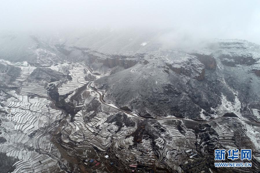 連日來,河北省沙河市西部山區(qū)出現(xiàn)降雪天氣,白雪覆蓋的梯田宛如一幅水墨畫。
