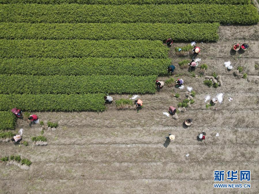 3月13日,在遵義市余慶縣白泥鎮(zhèn)滿(mǎn)溪村,村民在田間勞作(無(wú)人機(jī)照片)。新華社發(fā)(穆明飛 攝)
