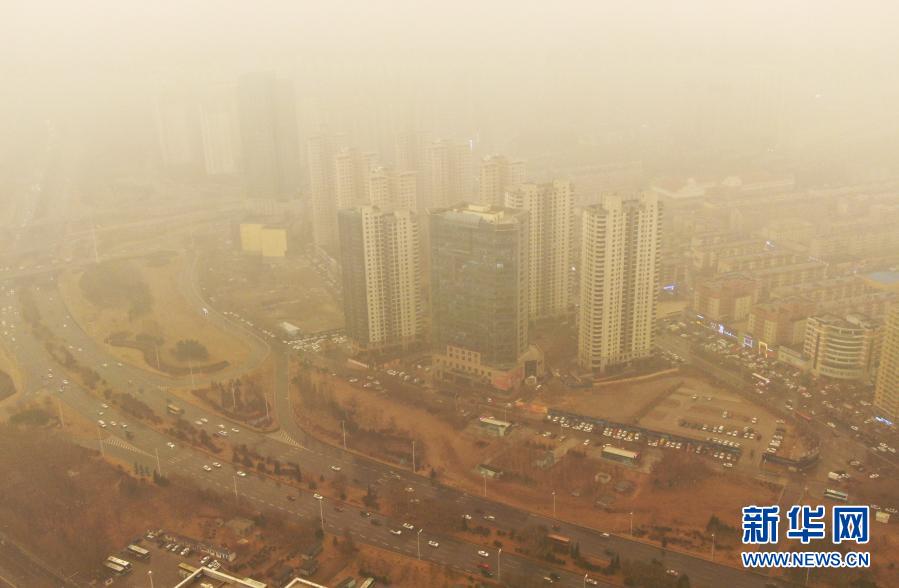 這是3月15日拍攝的遼寧省沈陽(yáng)市渾南區(qū)一景(無人機(jī)照片)。當(dāng)日,我國(guó)北方多地出現(xiàn)沙塵天氣。新華社記者 楊青 攝