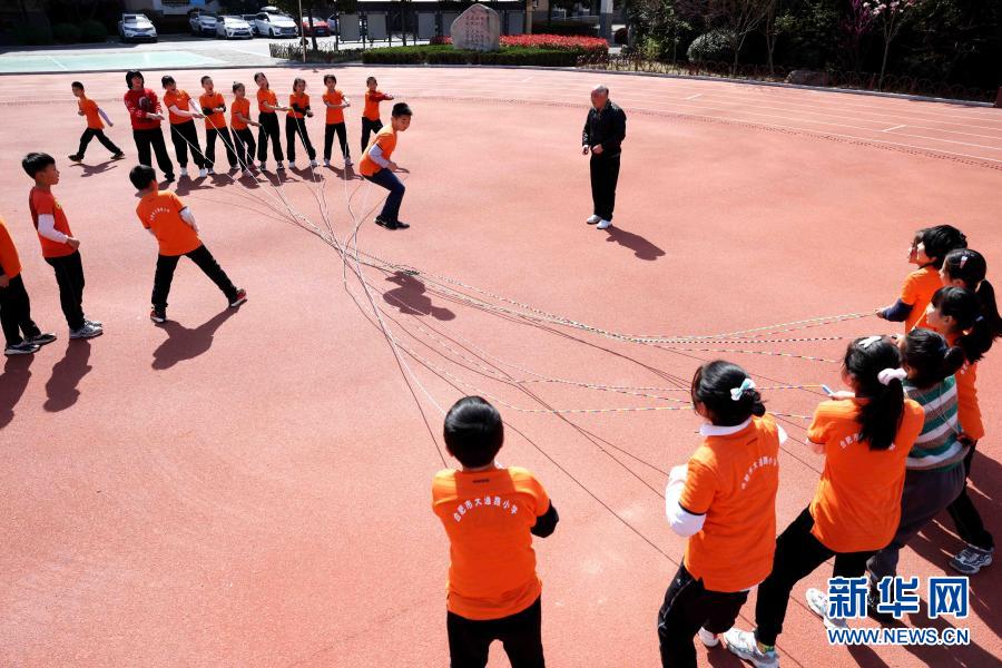 自2016年開始,安徽省合肥市瑤海區(qū)大通路小學(xué)新海校區(qū)將“花樣跳繩”運(yùn)動(dòng)融入學(xué)校素質(zhì)教育實(shí)踐中,聘任專業(yè)老師,開設(shè)花樣跳繩課、組建花樣跳繩隊(duì),并分年級(jí)編寫特色校本教材,開展全校范圍內(nèi)的花樣跳繩活動(dòng)。通過該項(xiàng)運(yùn)動(dòng),為孩子們提供鍛煉展示的平臺(tái),豐富學(xué)生體育活動(dòng)內(nèi)容,增強(qiáng)學(xué)生體能體質(zhì)。