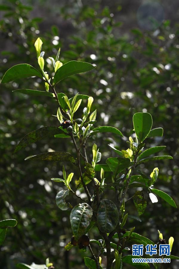 武夷山鬼洞巖茶基地生態(tài)茶園茶樹(shù)冒出新芽(3月23日攝)。