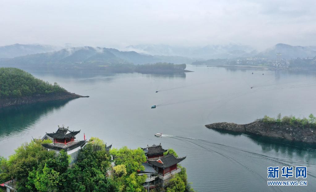 秦巴山區(qū)的陜西省安康市漢濱區(qū)流水鎮(zhèn),一面依山三面環(huán)水。山水之間,鄉(xiāng)村農(nóng)家,與滿目青山中的茶園果園相映成趣,構(gòu)成一幅清新悠然的田園畫卷。湖邊沿岸點(diǎn)綴的多處名勝古跡,更為小鎮(zhèn)增添了文化韻味。
