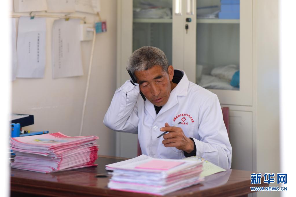 在山西省石樓縣鐵頭村衛(wèi)生室,張尚保在接聽詢診電話(3月24日攝)。新華社發(fā)(劉亮亮 攝)