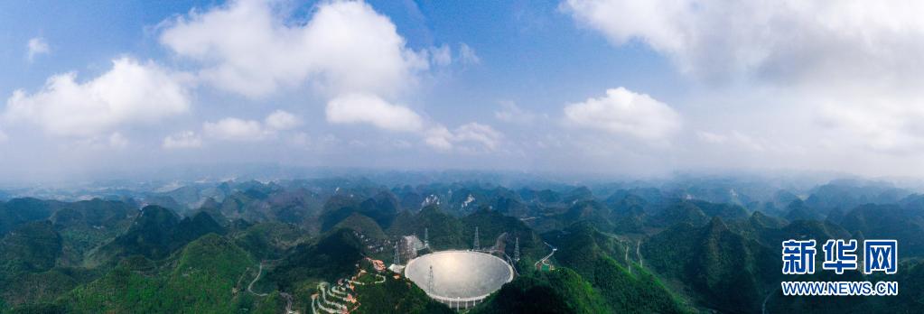 在貴州省平塘縣,被譽(yù)為“中國(guó)天眼”的500米口徑球面射電望遠(yuǎn)鏡(FAST)在群山中仰望星空,探求著宇宙奧秘。