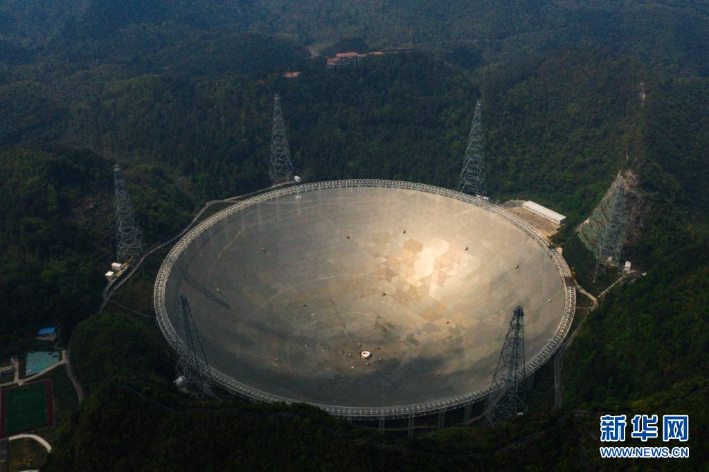 在貴州省平塘縣,被譽(yù)為“中國天眼”的500米口徑球面射電望遠(yuǎn)鏡(FAST)在群山中仰望星空,探求著宇宙奧秘。
