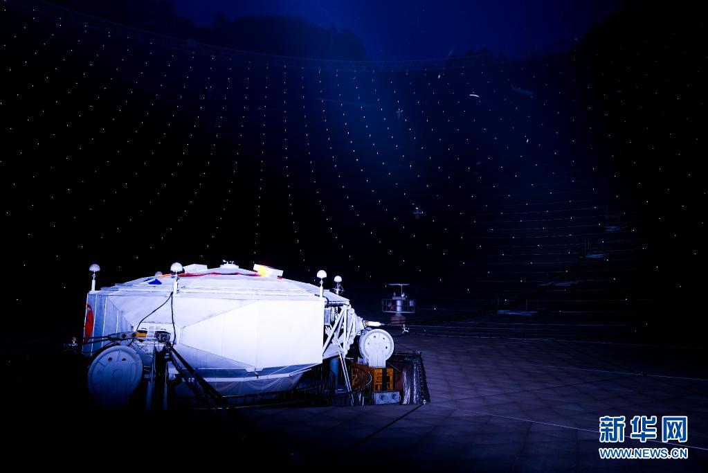 3月29日拍攝的夜幕下的“中國天眼”饋源艙。