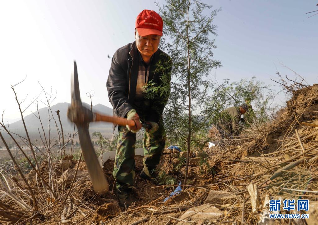 仲春時(shí)節(jié),河北省遵化市提前開(kāi)始今年的荒山造林,造林隊(duì)員們忙著運(yùn)送樹(shù)苗、栽樹(shù)、澆水。遵化市今年計(jì)劃完成荒山造林5萬(wàn)多畝。
